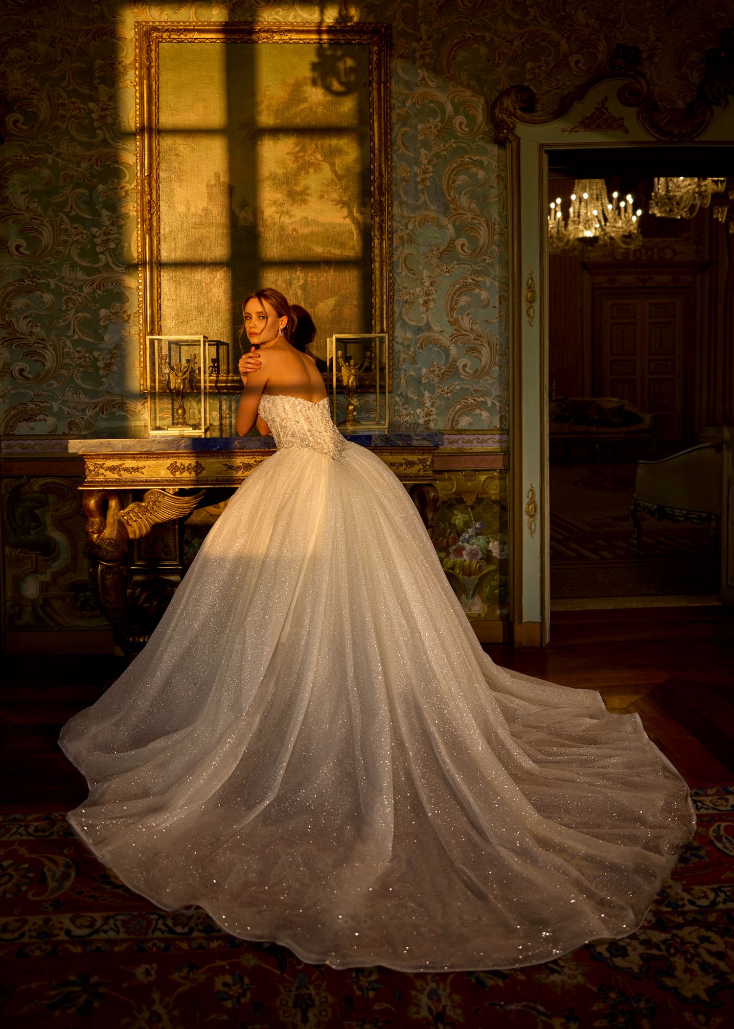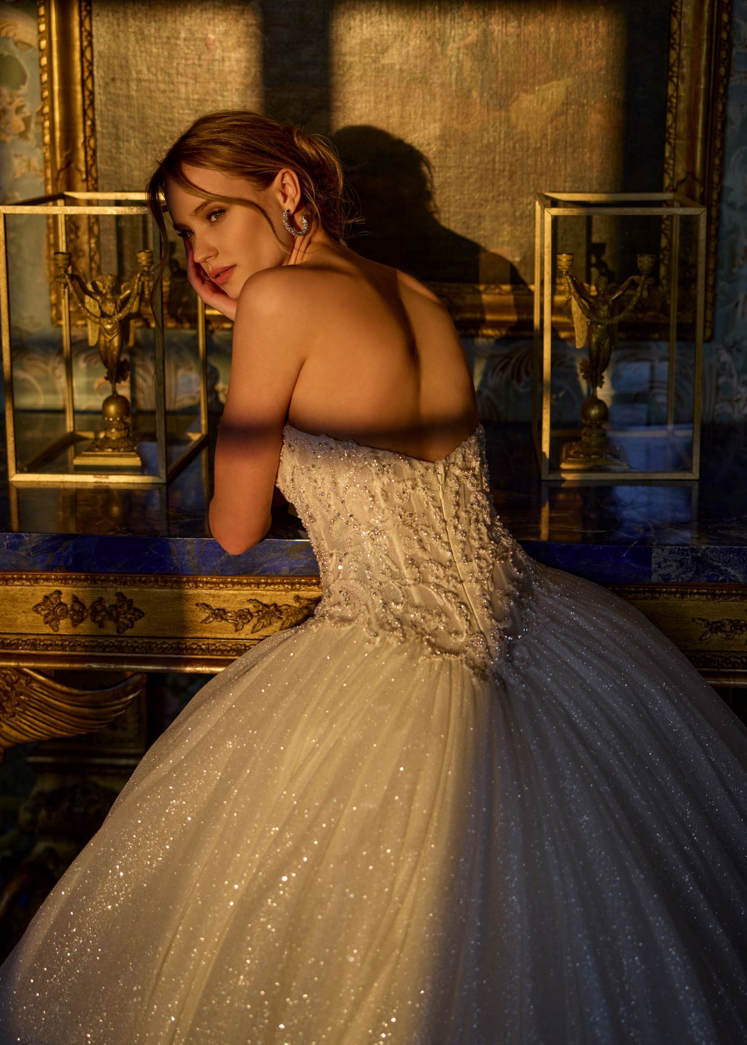Ballgown with a beautiful sweetheart neckline and glitter skirt.