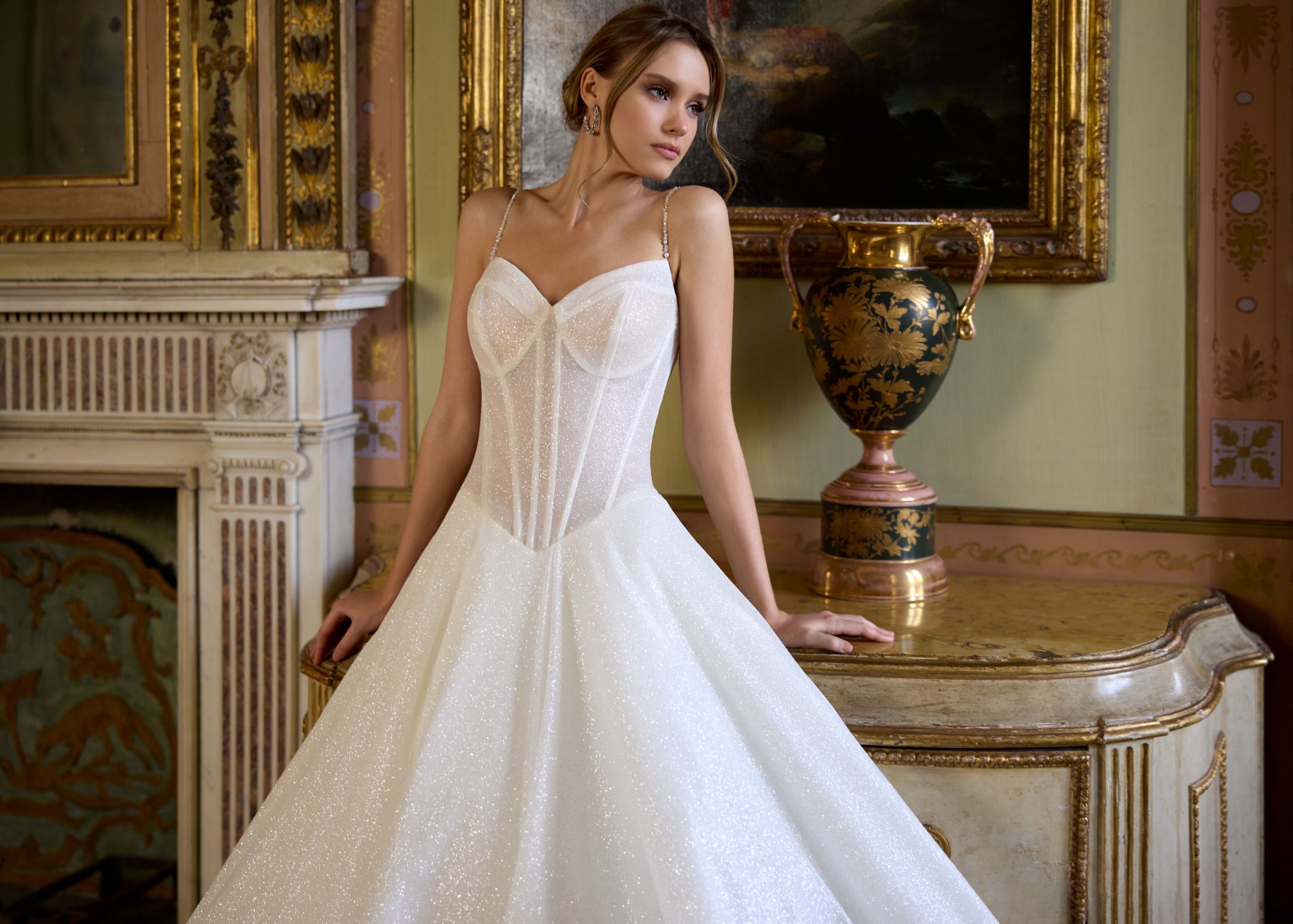 Ballgown with all over glitter and sparkle.